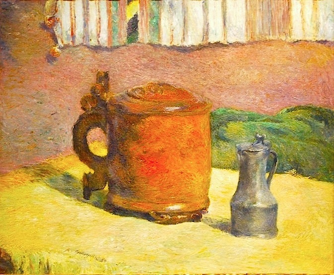 △《 木質 Tankard 和金屬容器 / Wood Tankard and Metal Pitcher 》 高更 / Gauguin, Oil on canvas, 1880.