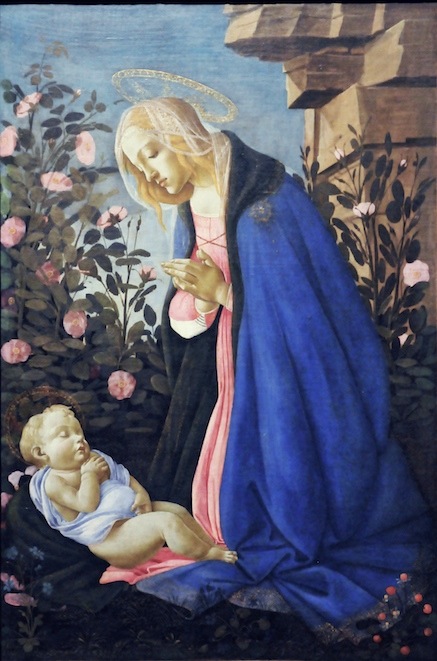 上左圖《The Virgin Adoring the Sleeping Christ Child (ca. 1485)》是波提切利約於1485年完成的《聖母瑪立亞陪伴聖嬰》,氣氛肅穆安詳,是波提切利諸多同樣題材的代表佳作。波提切利不少創作都是藝術史發展的里程碑,比如:《維納斯的誕生 / The Birth of Venus》、《 / Primavera》等,都是大家耳熟能詳的偉大作品。